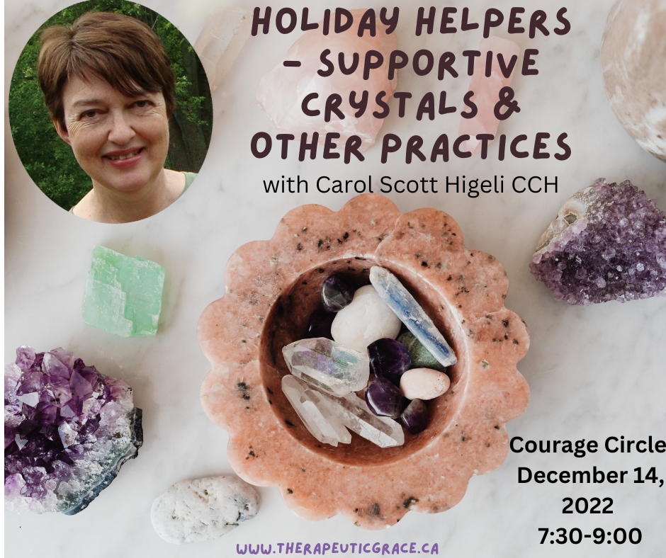 Learn how to create a Crystal Grid Body Layout, and a Crystal Talisman for your own self care! Working with just a few crystals in a heart centred way, can connect us with the stability and peace of mind, we search for at this busy time of year. This is a great opportunity to work with those crystals you’ve been collecting. You’re welcome to bring a few favourite stones, and we’ll talk about ways to include them in your wellness practice!